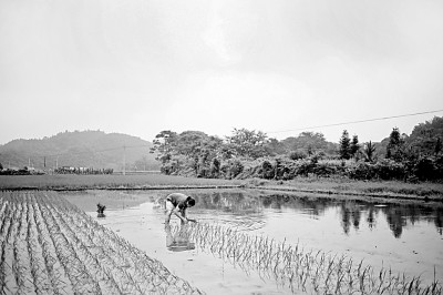 當我在故鄉(xiāng)的田埂上,重新觀看插秧這個農事勞作時,我發(fā)現(xiàn)了它的不同之處。它是人與土地之間的契約,又是土地對農人的承諾。在整個插秧的過程中,拋秧是最為激動人心的環(huán)節(jié)。當青秧被束成一把,借助農人手臂掄起的力量,短暫地脫離地心引力的束縛,在空中劃出一道完美的拋物線時,我發(fā)現(xiàn),那是它一生中離大地最遠的時刻。