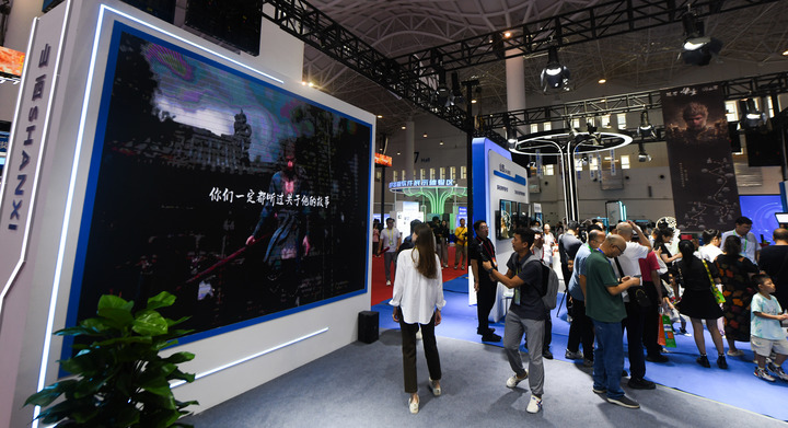 數(shù)博會上,國產(chǎn)游戲《黑神話:悟空》備受矚目。山西展團(tuán)以游戲中“悟空”路線為主題,重點(diǎn)展示了一批介紹山西古建筑、歷史文化遺產(chǎn)的出版物,“悟空拍照區(qū)”成了“熱門打卡地”。