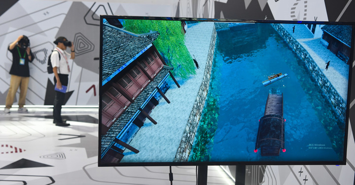 9月21日,觀眾在第十四屆中國國際數(shù)字出版博覽會上體驗(yàn)大運(yùn)河VR沉浸式研學(xué)空間。 新華社記者 楊冠宇 攝