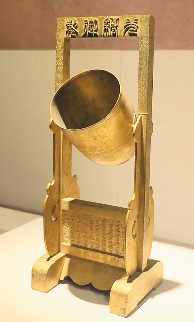 清代銅鍍金欹器。