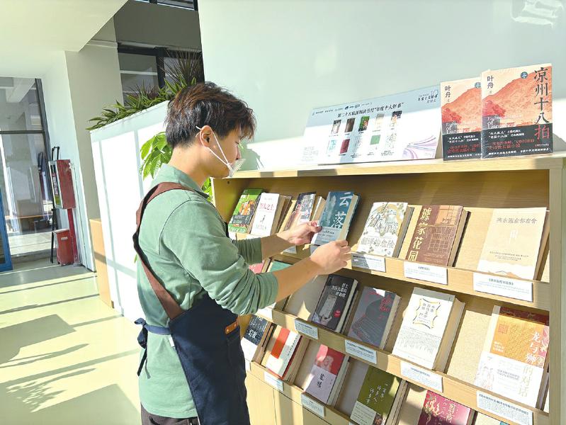 1月1日上午,深圳信息職業(yè)技術學院湖畔書吧店長蔡錦元在整理書架、碼放圖書。