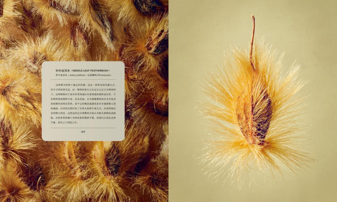 隨后,植物園耗時6個月,從3500份標本中精心篩選出100種植物果實與種子。列文·比斯將這些攝影對象放大至80倍,捕捉到植物表面豐富多樣的細節(jié),照片的精細程度超乎想象。每張圖片還配有一段簡潔的科普文字,不僅反映了100多年來植物的采集狀況,展示了種子的傳播方式,還介紹了人類對植物材料的利用方法。