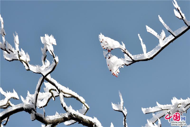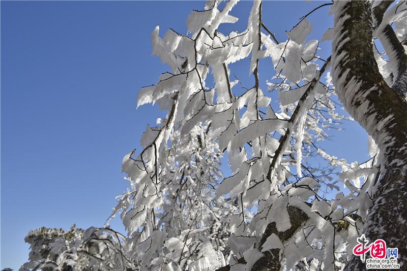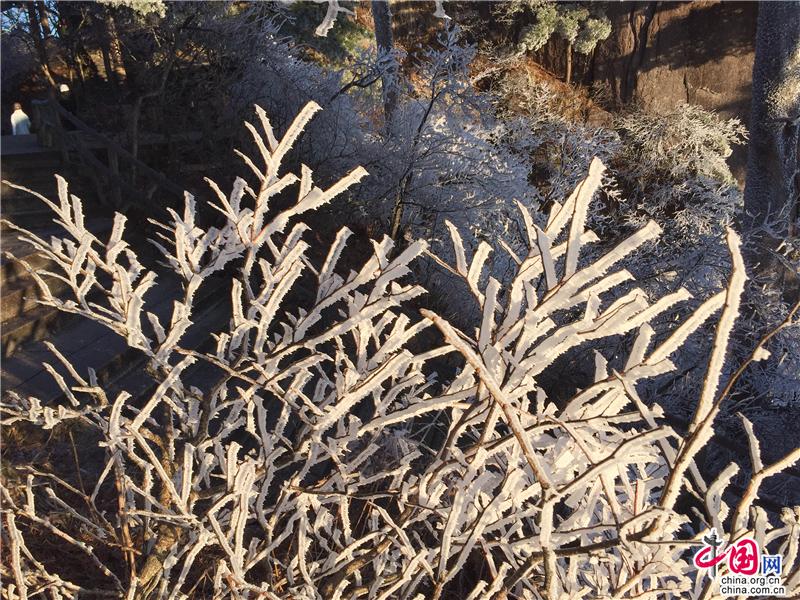 2019年最后一天黃山風(fēng)景區(qū),出現(xiàn)壯觀的日出、霧凇、云海景觀,到處銀妝素裹,冰雕玉砌,“一夜寒風(fēng)起,萬樹銀花開”,置身其間,仿佛進入撲朔迷離的童話世界,給來山的游客帶來意外的驚喜。