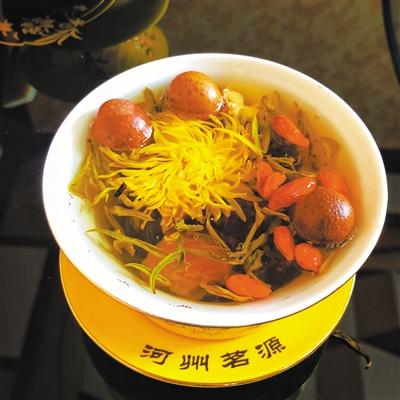 茶盤里除茶葉之外,還有冰糖、枸杞、桂圓、紅棗、杏干、葡萄干、玫瑰花、菊花等。你可以根據(jù)自己的喜好,選幾樣放在蓋碗里,伙計(jì)用滾滾的“牡丹水”(臨夏對(duì)開水的戲稱)挨個(gè)澆在這些蓋碗里,頓時(shí),茶葉、枸杞、紅棗、菊花的香味伴著冰糖的“嗞嗞”聲升騰開來。