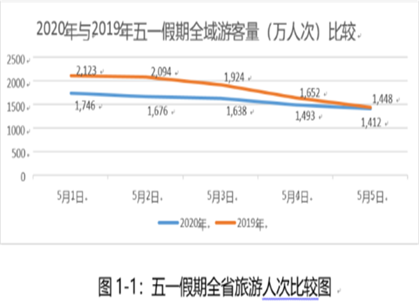 “五一”假期期間全省全域旅游人次7965.1萬(wàn)人次,較去年同期9240.4萬(wàn)人下降13.8%。