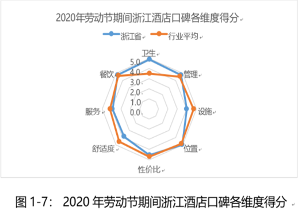 “五一”假期期間,浙江酒店在位置(口碑得分4.9分)、衛(wèi)生(口碑得分4.9分)、餐飲(口碑得分4.8分)方面表現(xiàn)較好,領(lǐng)先行業(yè)平均水平。但在服務(wù)(口碑得分 3.9 分)、舒適度(口碑得分3.8分)、設(shè)施(口碑得分4.0分)方面表現(xiàn)略有不足,需要引起關(guān)注。