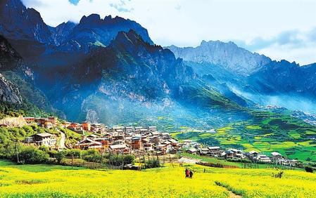 在銀裝素裹的雪山圍繞之中,是保留著最原生態(tài)的藏族村落。全木質的房屋、圍欄中的牦牛綿羊、從田地返回的熱情藏民、傍晚時山谷間繚繞的炊煙……全都是現(xiàn)代城市早就失落的質樸之美。