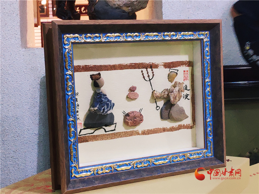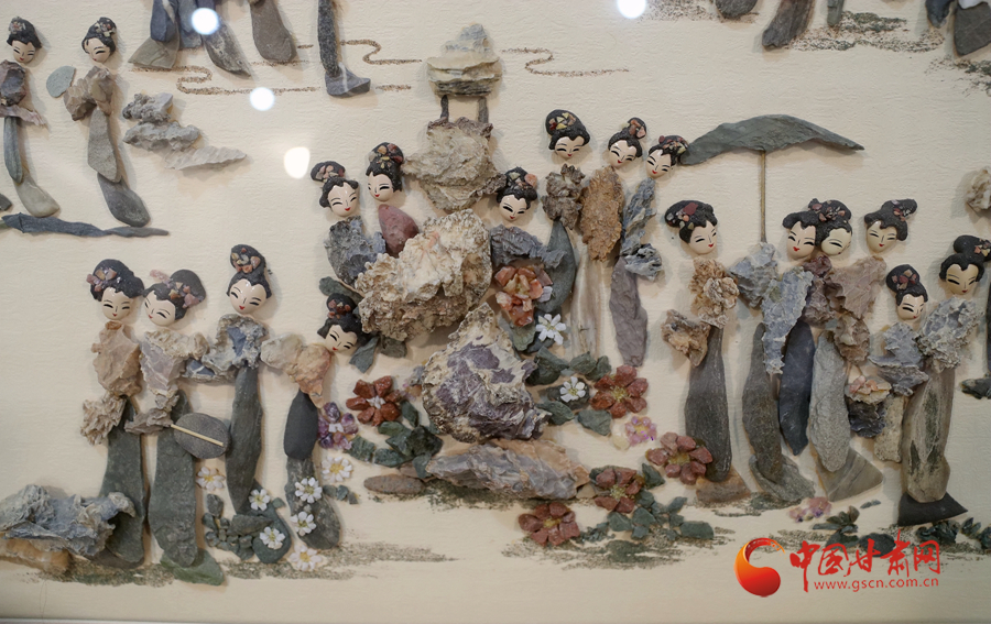 最近,周文露正在創(chuàng)作客戶定制的金陵十二釵圖,這幅風(fēng)雨雕除了人物面部經(jīng)過(guò)人為描繪加工,其他部位以及山水意境等都是戈壁沙石所做。很大程度上,這幅作品就是巧妙地將戈壁沙石創(chuàng)意堆砌達(dá)到畫(huà)面效果。
