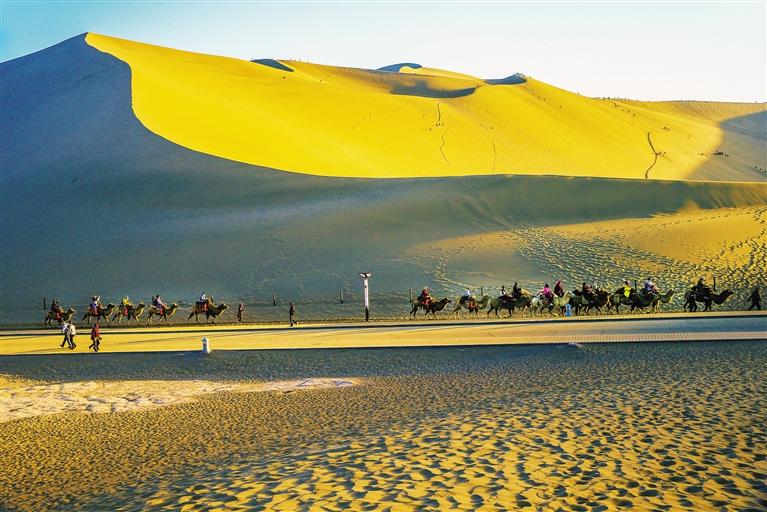 剛剛過去的中秋國慶黃金周,甘肅累計接待游客1595萬人次,實現(xiàn)旅游綜合收入92.6億元,分別恢復(fù)至上年國慶黃金周假日水平的74.2%和61.7%。在驢媽媽發(fā)布的“中秋國慶黃金周西北人氣景區(qū)TOP10榜單”中,除了青海湖和烏蘇素特水上雅丹,甘肅景區(qū)包攬了八個席位:金塔沙漠胡楊林、嘉峪關(guān)關(guān)城、平山湖大峽谷、肅南馬蹄寺、鳴沙山月牙泉、黃河石林、張掖七彩丹霞景區(qū)、雅丹國家地質(zhì)公園8大景區(qū),憑借火爆的人氣上榜。