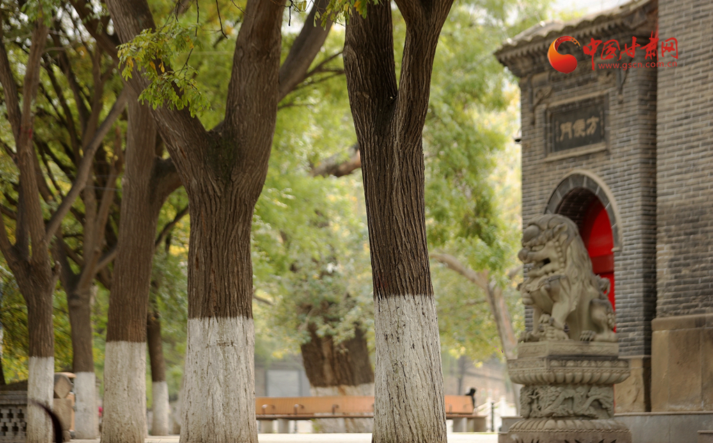 一片黃葉帶來秋的訊息,一片銀杏林則映襯一尊石獅子的美好時光,在五泉山,隨著深秋到來,銀杏泛黃,莊嚴(yán)的石獅與金黃的銀杏林產(chǎn)生了巧妙融合。在銀杏泛黃的時光里,石獅的威嚴(yán)中多了幾分恬靜。