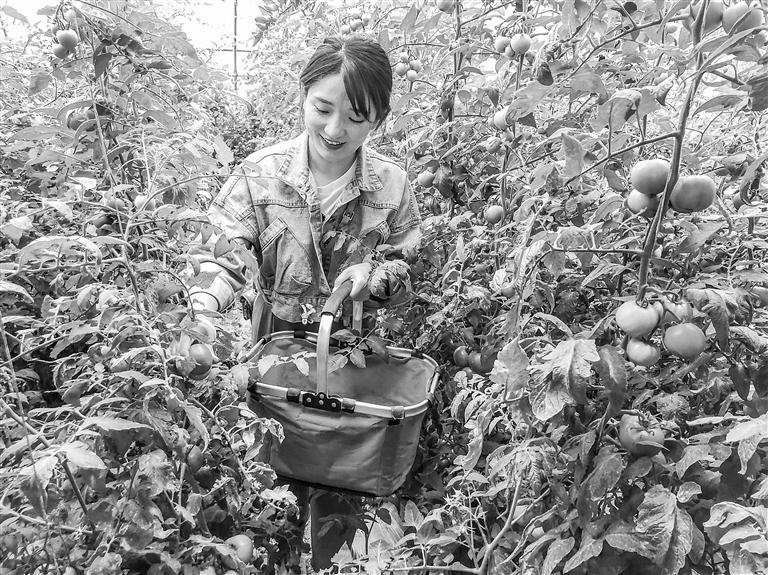 游客正在采摘圣女果。首席記者 田蹊 攝
