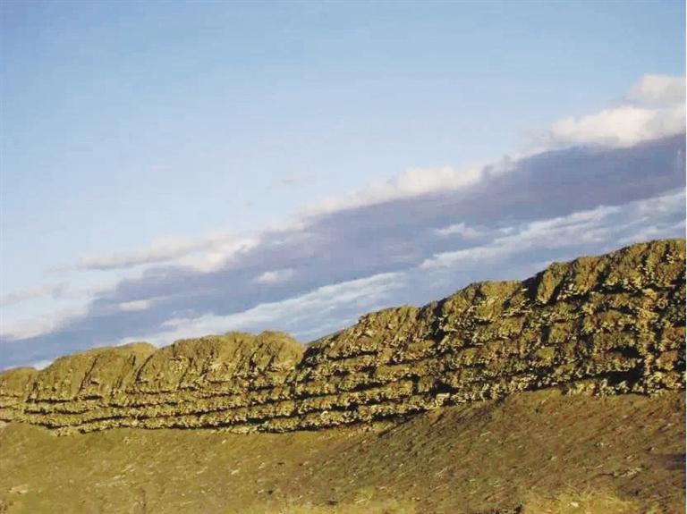 花海漢長城遺址位于玉門市花海鎮(zhèn)西泉村頭墩西側(cè)至二墩東側(cè),西起三墩,東至花海頭墩,全長約3.5公里,長城基寬約2.4米,用沙石、紅柳分層夯筑,最高部分保存有紅柳7層,是河西走廊漢代長城遺址中保存較完好的地段之一。為有效保護(hù)漢長城花海段遺址,近年來,玉門市積極實(shí)施漢長城防護(hù)工程,對(duì)該段因長期遭受風(fēng)力侵蝕,病險(xiǎn)較為嚴(yán)重的長城本體進(jìn)行了搶險(xiǎn)加固,在花海鎮(zhèn)頭墩西側(cè)至二墩河壩間1.5公里地段內(nèi)敷設(shè)了6層全封閉刺鋼絲網(wǎng),并在漢長城內(nèi)外兩側(cè)安裝防護(hù)欄、樹立保護(hù)標(biāo)志、埋設(shè)界樁界碑,有效遏制了人為破壞,對(duì)漢長城的保護(hù)發(fā)揮了積極作用。