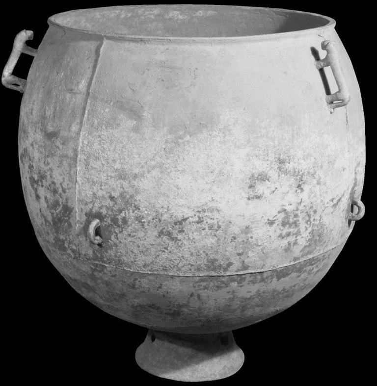 這件青銅鍑的鑄造帶著游牧民族的特點(diǎn),先分后合, 分塊鑄造然后焊接而成。這是一件罕見的秦末漢初匈奴鑄造的大型青銅鍑,其時間大概在戰(zhàn)國到漢初。