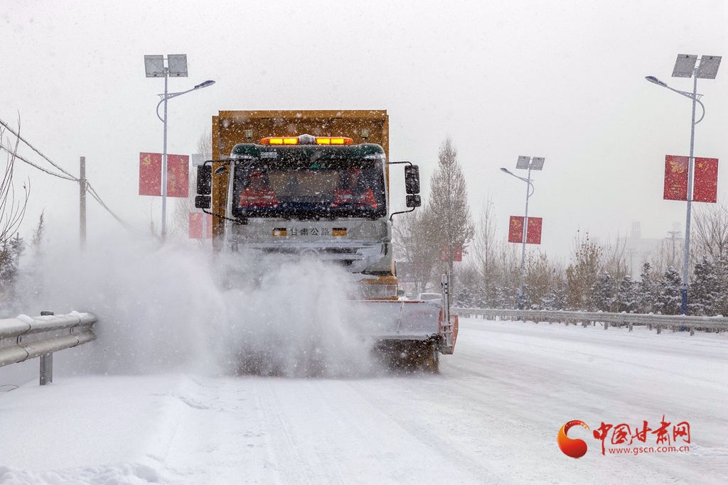 12月12日,甘肅省張掖公路局除雪車輛在國道227線進行除雪作業(yè)。
