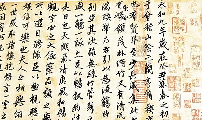 何為不朽?不朽在于引起后代的共鳴,于后人幾成緬想。那遠去的曾經,在身邊現實中已經難以找尋,個體的記憶怎樣傳承歷史厚重,也許這也是一種最好方式。那張涂抹得一塌糊涂的紙,一千多年來,從沒有消停過,穿越時空,無數人一棒接過一棒,在手中傳承,揣摸,膜頂,令無數書法愛好者追慕效法。很多人正是通過觀摩學習《蘭亭序》,愛上書法藝術,進而走入這門高雅的書法藝術殿堂。
