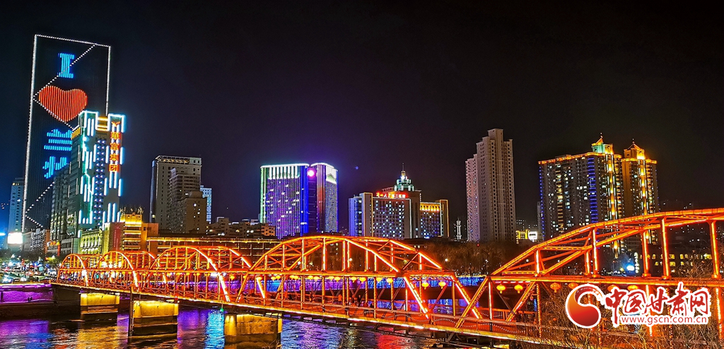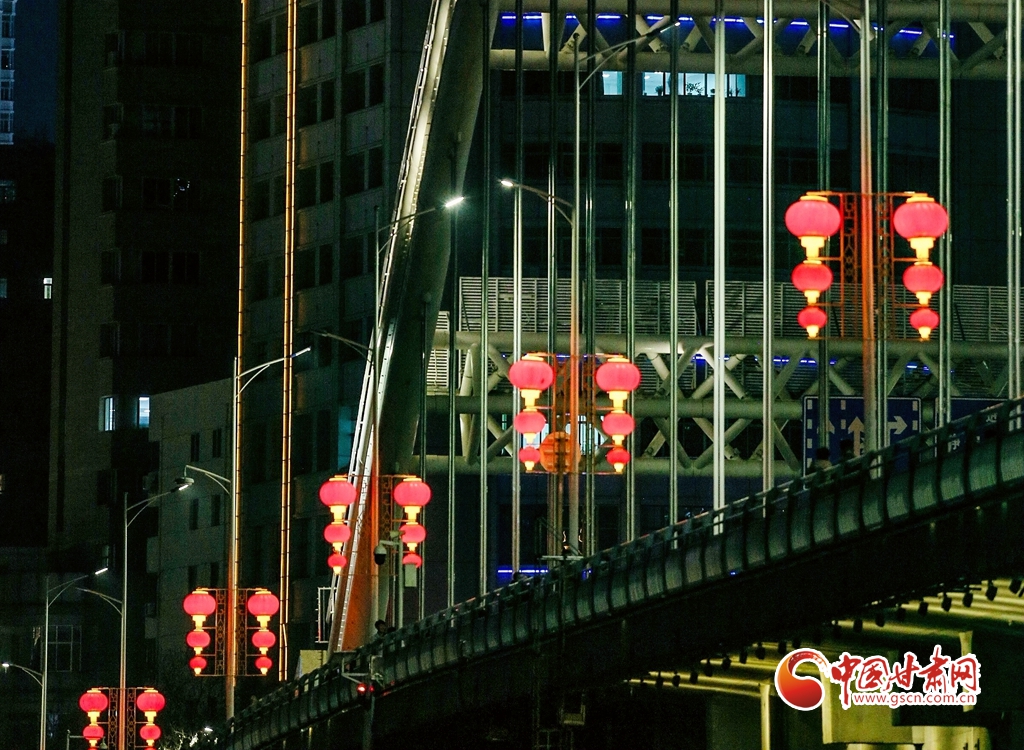 2月21日,蘭州中山鐵橋燈火璀璨。(手機(jī)拍攝)
