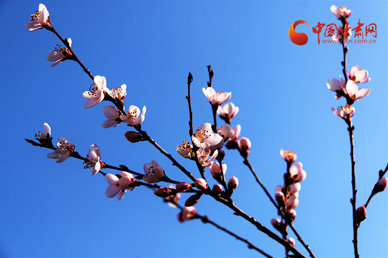 在五龍山,漫山桃花競相開放,香氣襲人,匯成了花的海洋,粉紅的桃花在春風(fēng)里綻放,在春日的陽光下煞是好看,遠(yuǎn)遠(yuǎn)望去粉的嬌柔婀娜,層層疊疊,瓣瓣舒展。一列火車疾馳而過,滿眼的美景吸引過往游客駐足拍照留念,感受大自然給予這座小城的美好饋贈(zèng)。