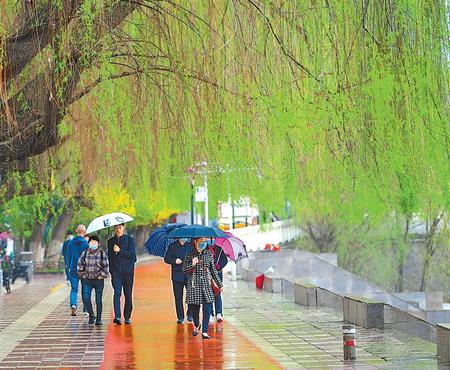 3月31日,一場春雨一洗連日的沙塵,人們在蘭州黃河風情線盡享雨后美景。新甘肅·甘肅日報記者 盛學卿