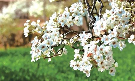 一樹樹、一朵朵雪白的梨花迎風(fēng)搖曳,散發(fā)出陣陣清香。