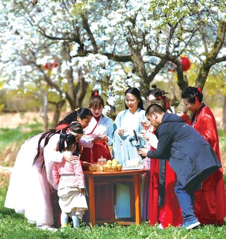 綿延不絕的梨花吸引了眾多游客前來踏青賞花。