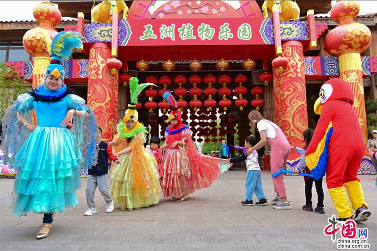 同期進(jìn)行的文化演藝活動,今年在內(nèi)容上也更加豐富,除了傳統(tǒng)地道的玲瓏舞龍獅、威風(fēng)鑼鼓、民族春花漫舞秀、木蘭扇秀、氣勢磅礴的腰鼓等,還增添了小朋友喜愛的趣味小丑專場表演、卡通人偶巡游、南宮曉樂隊演出,大小朋友還可以一起動手體驗扎染和茶道的樂趣。此外,在南宮古風(fēng)市集中,漢服愛好者既可拍照打卡,又能挑選琳瑯滿目的國潮商品和小吃,盡享國風(fēng)游園的春之韻。