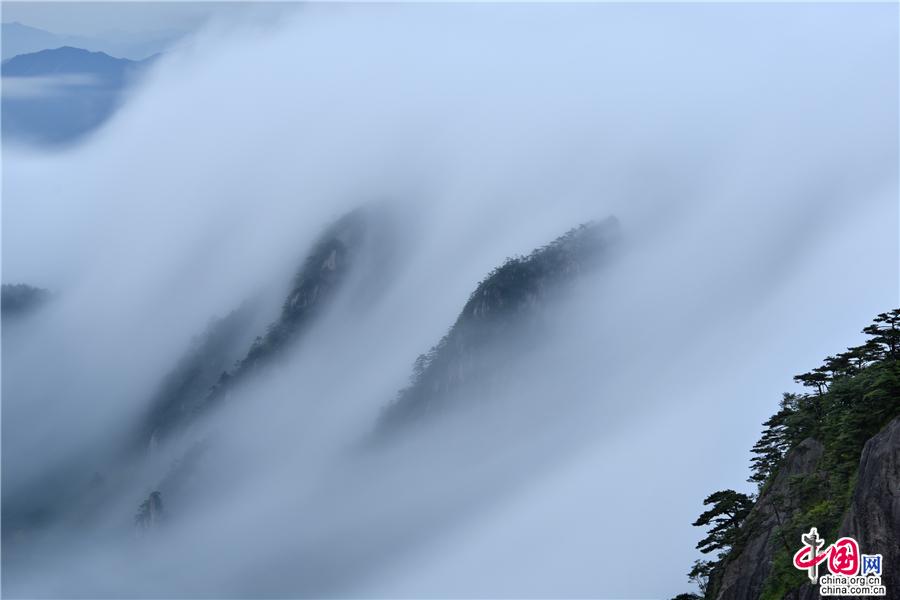 原標(biāo)題:云霧中的黃山,美如一幅幅流動(dòng)的水墨畫