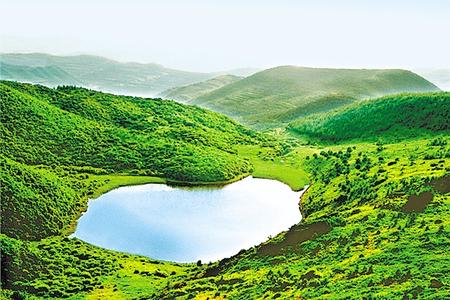 文縣天池,又名洋湯天池,位于隴南市文縣縣城以北約100公里處。由于遠古時期的地殼活動,致使地殼斷裂,洋湯河河道被堵截,于是在天魏山上,便匯成了狀如葫蘆的一湖碧水,猶如一顆璀璨的藍寶石鑲嵌在隴南山區(qū)的萬山叢林之中。