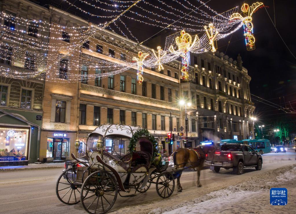 新年即將到來,俄羅斯圣彼得堡街頭點(diǎn)亮各色燈飾,營(yíng)造節(jié)日氣氛。