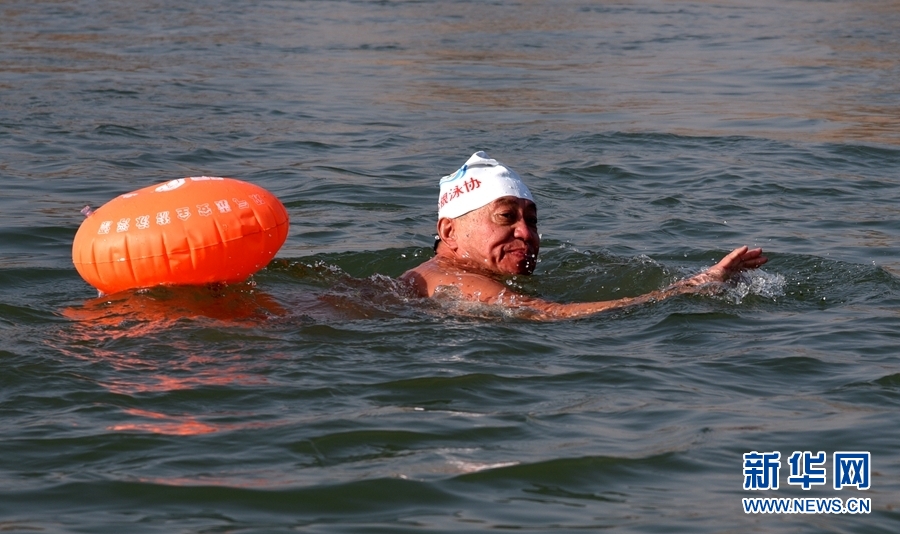 2022年元旦假期,甘肅省白銀市21名冬泳健將冒著嚴寒來到黃河白銀水川段,以漂流或橫渡的方式暢游黃河,歡慶新年。新華網(wǎng)發(fā)(熊江彬 攝)