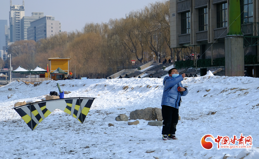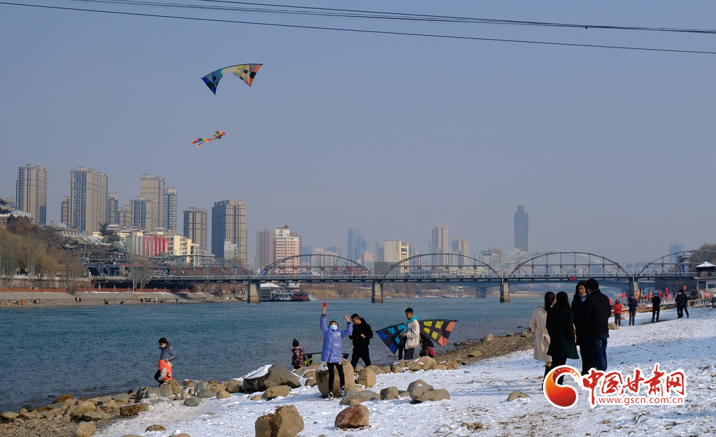 新春佳節(jié),早春時光,2月7日,雪后天晴,市民走出家門來到黃河之濱放風(fēng)箏。
