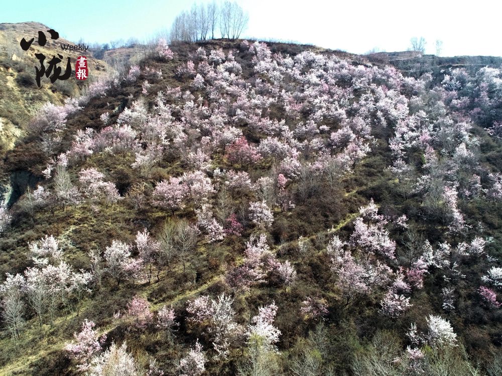 地處陰冷地帶的岷縣山區(qū),杏花漫山遍野開放,