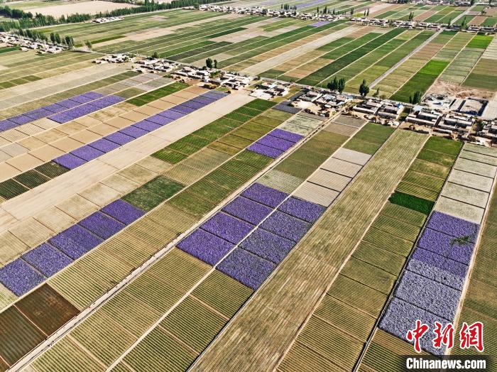 夏日時節(jié),甘肅省張掖市高臺縣駱駝城鎮(zhèn)紅新村和梧桐村的田野間,農(nóng)舍青青、遍野吐翠,阡陌縱橫間五彩斑斕,構(gòu)成一幅美麗的田園風(fēng)光畫。