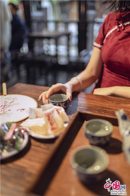 “白茶清歡無別事”,到蜆園橋畔茶香四溢的煮葉去喝一杯茶,在茶香氤氳中,看窗外人來人往,感受悠閑慢時光。提燈慢行在花巷雨巷,時光在石板路上浸潤;坐上手搖船穿行于水巷,江南小調(diào)在槳聲燈影中氤氳;水動魚池岸,光影輪轉(zhuǎn)中看魚群跳躍。