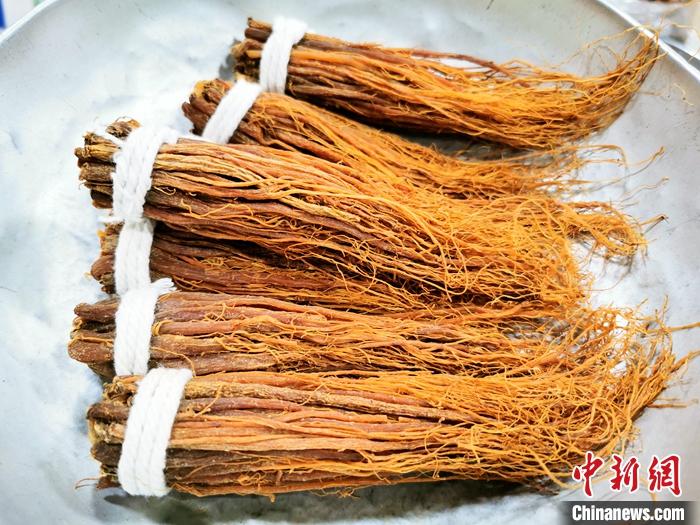資料圖為用小棉繩捆扎好、按克銷售的參絲。 中新社發(fā) 李曉春 攝