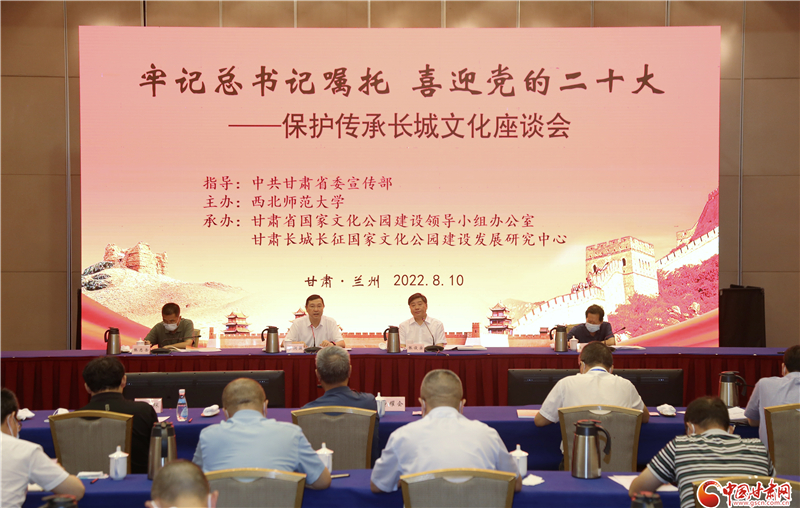 中國甘肅網(wǎng)8月10日訊(本網(wǎng)記者 程健 宋芳科)8月10日下午,由中共甘肅省委宣傳部指導,西北師范大學主辦,省國家文化公園建設領導小組辦公室、甘肅長城長征國家文化公園建設發(fā)展研究中心承辦的“牢記總書記囑托 喜迎黨的二十大——保護傳承長城文化座談會”在蘭召開。省委宣傳部副部長李潤強出席并講話。西北師范大學黨委書記、甘肅長城長征國家文化公園建設發(fā)展研究中心主任張俊宗主持座談會并致辭。