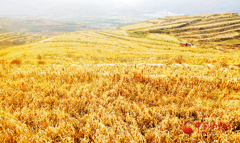 金秋,華亭市河西鎮(zhèn)河南村千畝谷子喜獲豐收。微風(fēng)吹拂下,千畝谷田泛金浪,廣褒田野谷飄香。