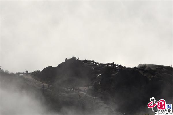 當人們站在高山之巔俯首云海,如臨大海,波起峰涌,浪花飛濺,驚濤拍岸,神奇的佛光一波接著一波,美如仙境。(姚育青)