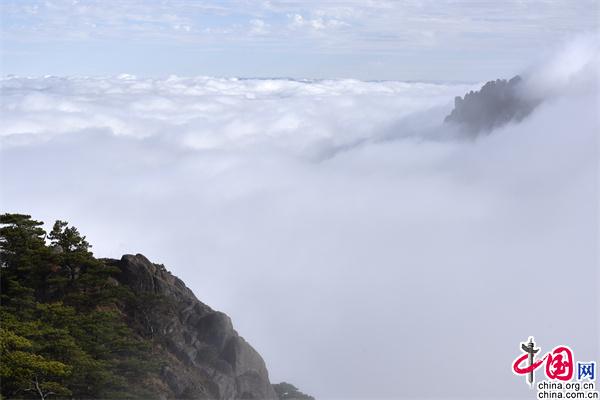 11月23日下午,安徽黃山風景區(qū)雨后放晴,山巒之中,云海彌漫,縹緲無形,奇松、怪石和群峰在的云海間時隱時現(xiàn),亦夢亦幻。