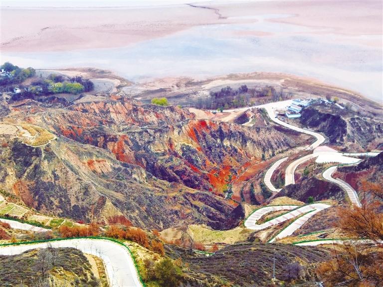 初冬時(shí)節(jié)的劉家峽庫(kù)區(qū)沿岸,盤(pán)山公路、丹霞地貌與碧水構(gòu)成了一幅多彩畫(huà)卷