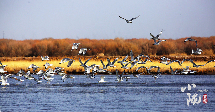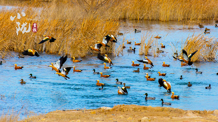 這里是甘肅民勤石羊河國家濕地公園,一處鑲嵌在騰格里和巴丹吉林兩大沙漠的“生態(tài)廊道”,位于民勤縣城以南30公里處,南起紅水河橋,北至紅崖山水庫北緣,是中國西北干旱區(qū)富有代表性的河流與沙漠水庫復(fù)合型濕地公園、荒漠濕地動(dòng)植物的樂園和基因庫。