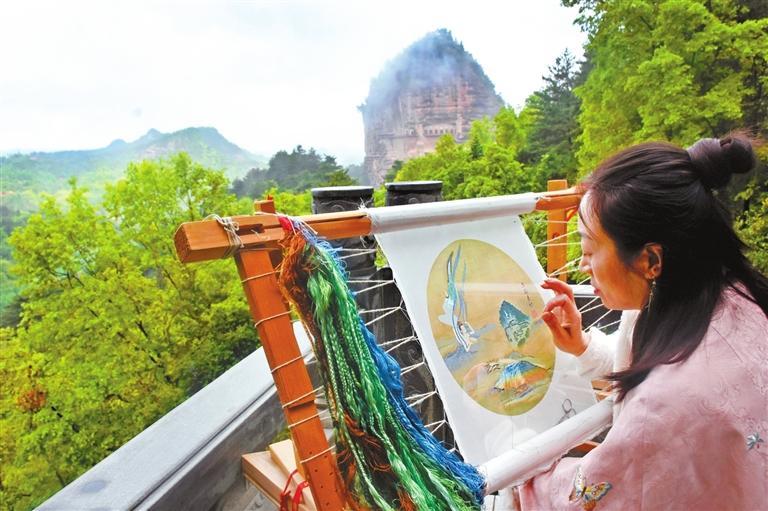 “應(yīng)用現(xiàn)代審美思維創(chuàng)作出麥積山石窟系列刺繡文創(chuàng)作品,麥積刺繡藝術(shù)品的觀賞價值和實用價值會進(jìn)一步凸顯。”曹苑春說。除此之外,畫繡、雙面繡團(tuán)扇、香包、刺繡宮燈、刺繡擺臺等作為裝飾生活的藝術(shù)品,已被很多人所喜愛,刺繡作品正以全新的面貌走入尋常百姓家。