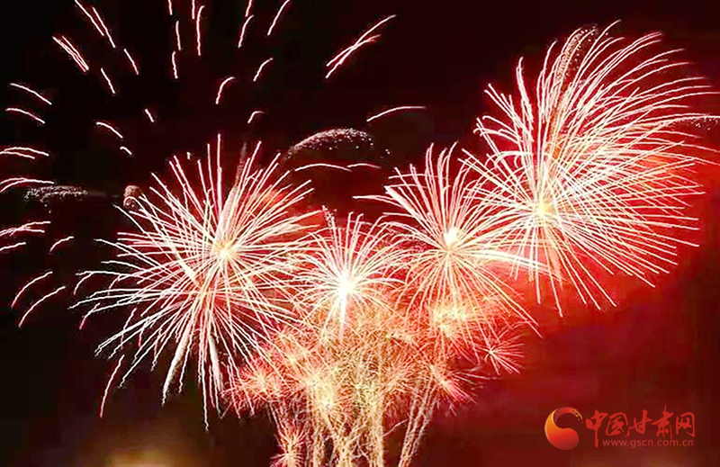 晚8時,大型焰火秀隆重拉開帷幕。當萬枚禮花隨著音樂和主持人的朗誦騰空而起時,寂靜的夜空瞬間被焰火點亮,現(xiàn)場頓時沸騰。洶涌澎湃的銀河瀑布如似金似玉從天庭倒掛,飛流而下,層層疊疊。依次從地面升起的各種禮花,如明珠,似繁星在空中閃爍,綻放出一幅幅絢麗壯觀、色彩繽紛的美麗畫卷。早早佇立在街頭和廣場的數(shù)萬市民看得目不轉(zhuǎn)睛,贊不絕口,紛紛拿出相機、手機拍照記錄美好瞬間。
