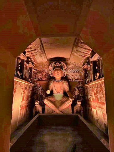 本次展覽從敦煌研究院引進了敦煌最早的石窟之一、北涼三窟中最大的275窟的復(fù)制窟,觀眾可以沉浸式體驗1∶1數(shù)字化、高保真復(fù)制的經(jīng)典藝術(shù)窟,身臨其境地走進敦煌莫高窟。