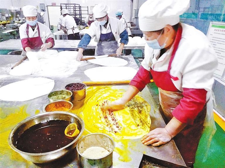 4月的蘭州,黃河兩岸花紅柳綠,永登縣城甘肅丁娃食品有限公司手工生產車間里,伴著一股天然的胡麻籽、玫瑰醬、香豆等混合的香氣,工人們正為一種傳統(tǒng)美食忙碌著。