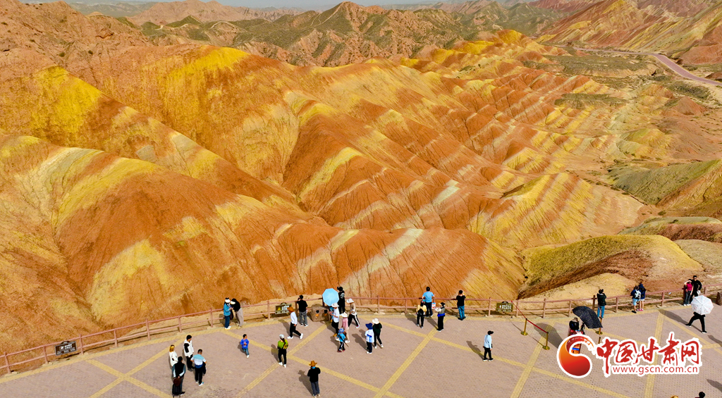 5月1日,甘肅張掖七彩丹霞旅游景區(qū)內(nèi)游人如織,來(lái)自全國(guó)各地的18000多名游客慕名前來(lái),欣賞獨(dú)特的丹霞地貌,領(lǐng)略大自然雄奇壯觀的景色。