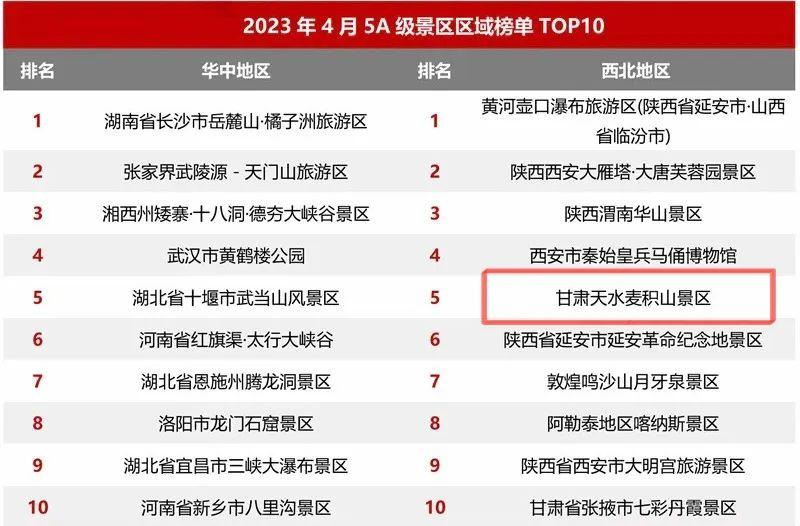 最新5A級(jí)景區(qū)百?gòu)?qiáng)出爐!麥積山大景區(qū)上榜!