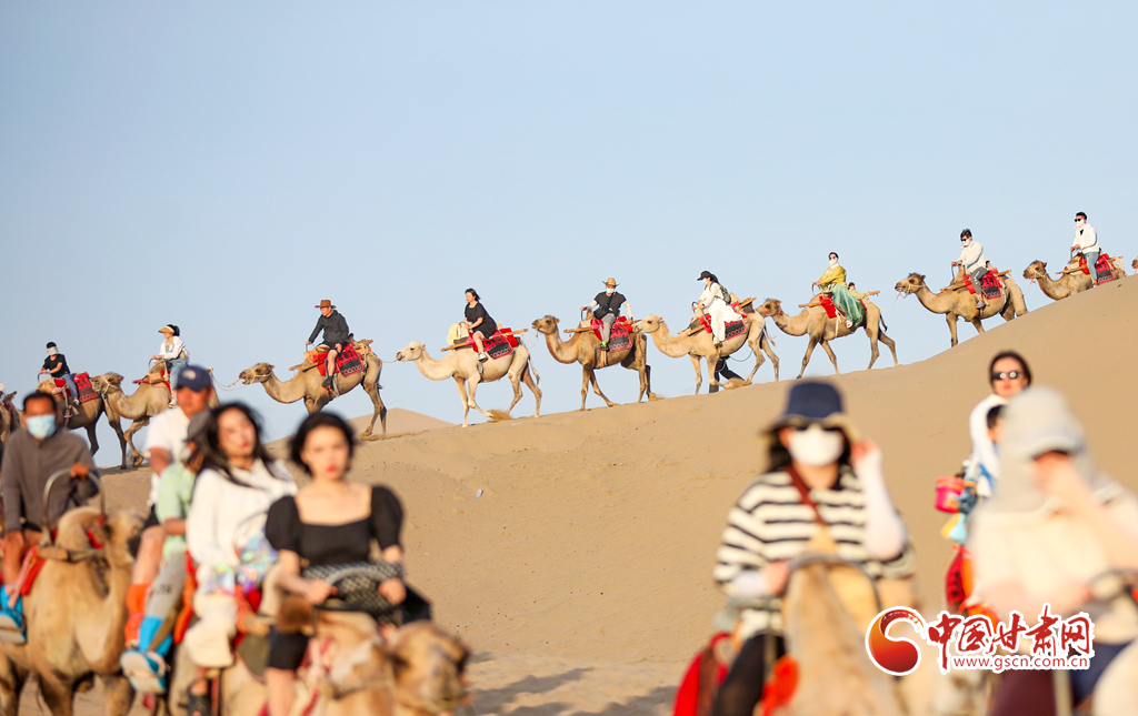 眼下正值甘肅省敦煌市旅游旺季,鳴沙山月牙泉景區(qū)持續(xù)吸引游客前來參觀游覽,這些駱駝每天更忙碌也更規(guī)律——早晨六點多“上班”,輪流休息,傍晚七點多“下班”。蜿蜒的駝隊在駝道上馱著游客在沙漠中漫步,成為鳴沙山月牙泉景區(qū)一道優(yōu)美的風景線。