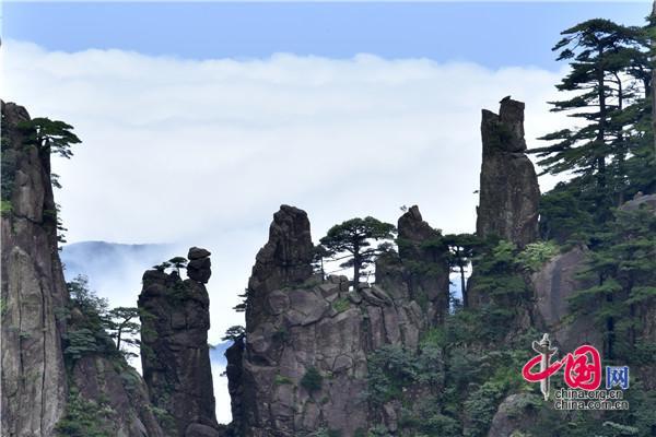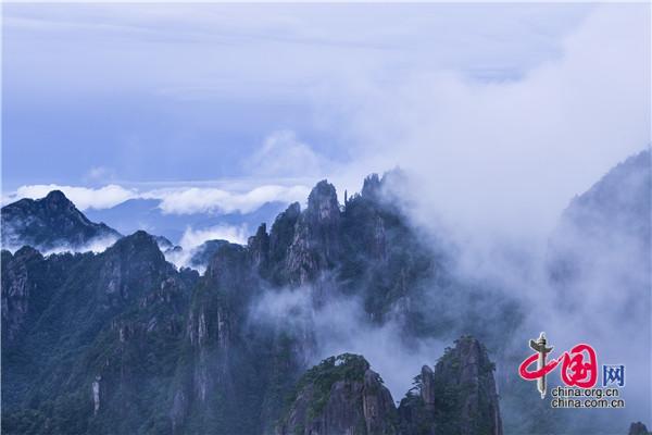 7月22日下午,安徽黃山風景區(qū)暴雨洗禮之后,漫山清秀俊逸,山石似黛,蒼松翠綠,云霧飄渺間,時而煙云繚繞如輕紗飛舞,時而又在千峰萬壑中波濤涌動,與奇松、怪石相映成趣,美如仙境。