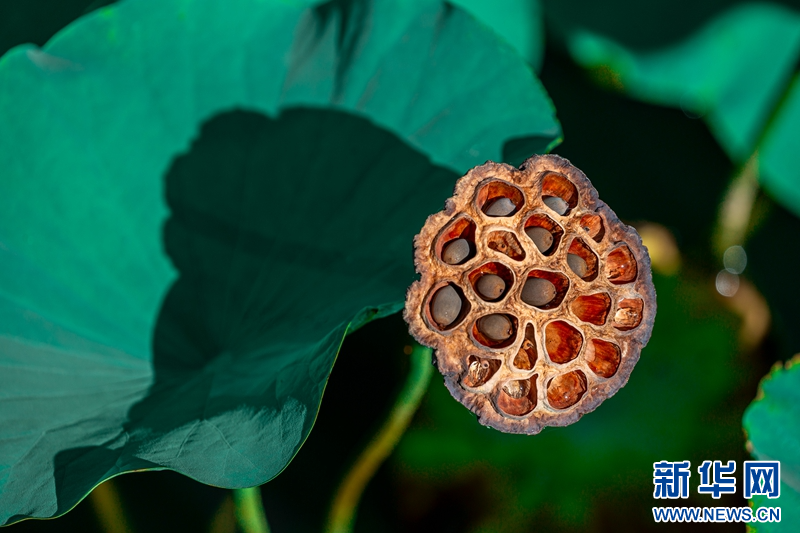 近日,在甘肅省白銀市白銀區(qū)水川黃河濕地公園,滿池荷花嬌艷、荷葉青翠,藍(lán)天、碧水、嬌花、翠葉構(gòu)成了一幅秋日美景圖。新華網(wǎng)發(fā)(郭宏 攝)