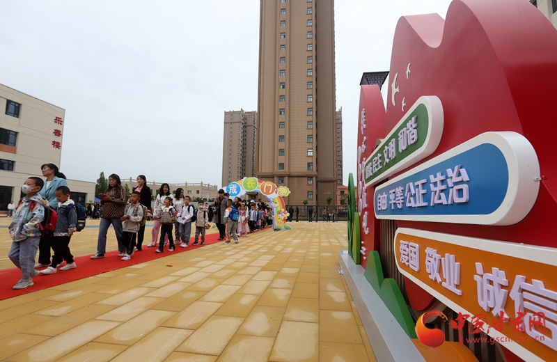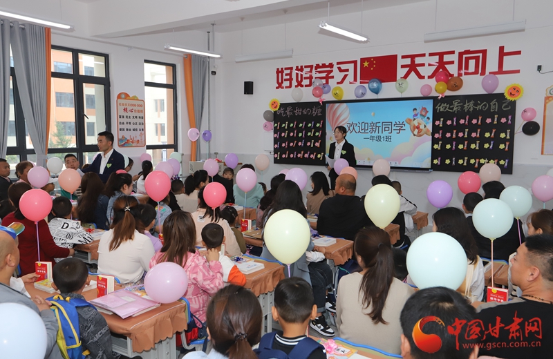 8月27日,平?jīng)鍪嗅轻紖^(qū)新河灣小學(xué)舉辦主題為“開蒙啟智 ‘躍’享未來(lái)”的一年級(jí)新生入學(xué)禮活動(dòng),通過(guò)擊鼓明志、朱砂啟智、拜師禮、穿越“成長(zhǎng)門”等儀式,培養(yǎng)孩子們的尊師重道美德,感受中國(guó)傳統(tǒng)文化魅力。